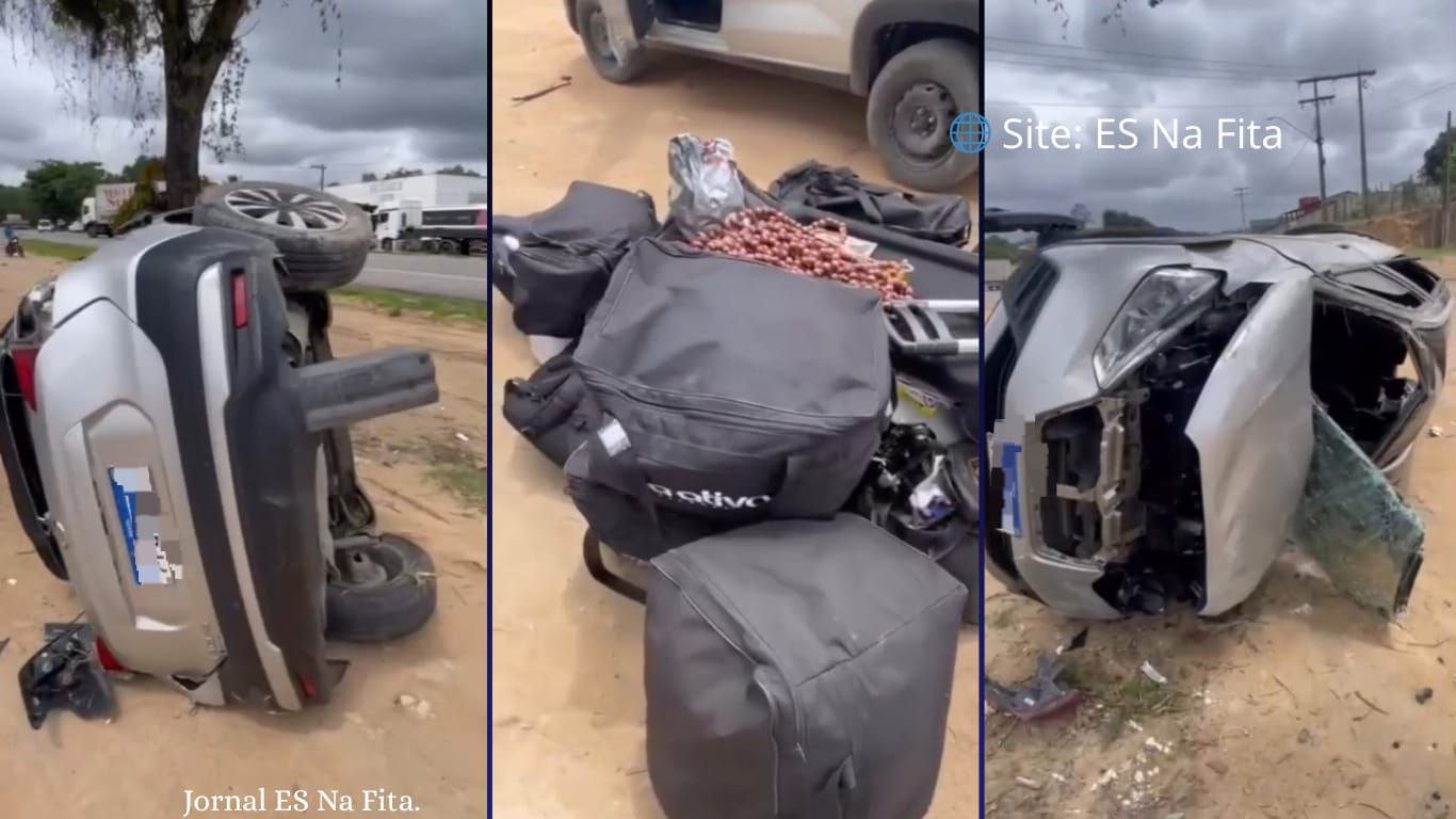 Durante a manobra, um carro que trafegava pela pista principal acabou colidindo lateralmente com o caminhão. Com o impacto, o condutor do automóvel perdeu o controle da direção e o veículo capotou sobre a pista.