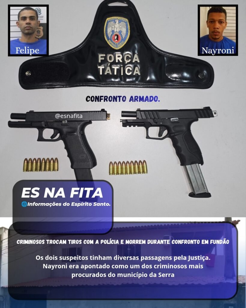Durante uma operação da Polícia Militar, por volta das 21h40 desta sexta-feira (19), no Centro do município de Fundão, dois suspeitos morreram após uma intensa troca de tiros com policiais da Força Tática.