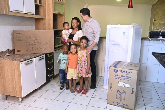Além da residência, a família foi presenteada com uma TV, uma geladeira e um fogão, entregues por meio da Secretaria de Cidadania, Direitos Humanos e Trabalho (Semcid). Os eletrodomésticos ajudam a garantir mais conforto e funcionalidade à nova rotina da família.