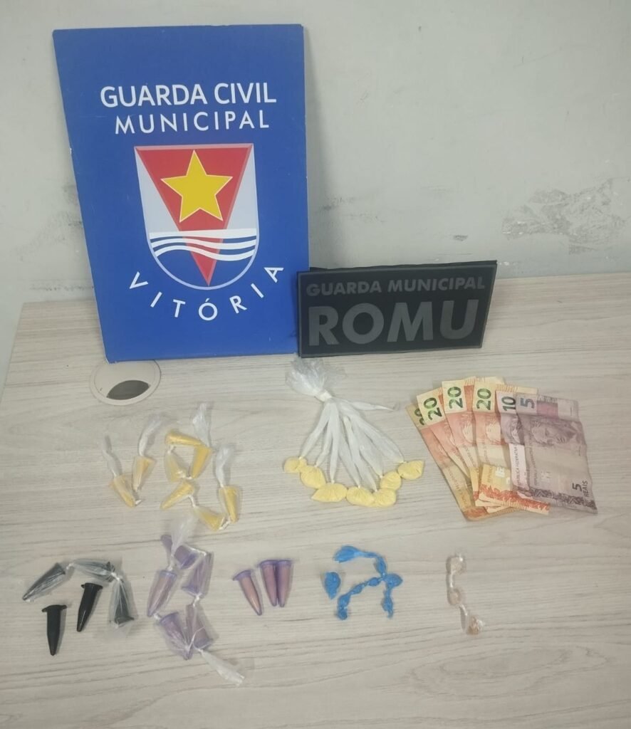 Com o homem, foram apreendidos R$ 95 em notas trocadas e uma sacola contendo entorpecentes diversos: uma unidade de haxixe, sete papelotes e 21 pinos de cocaína, além de dez pedras de crack. O material e o suspeito foram encaminhados à 1ª Delegacia Regional de Vitória.