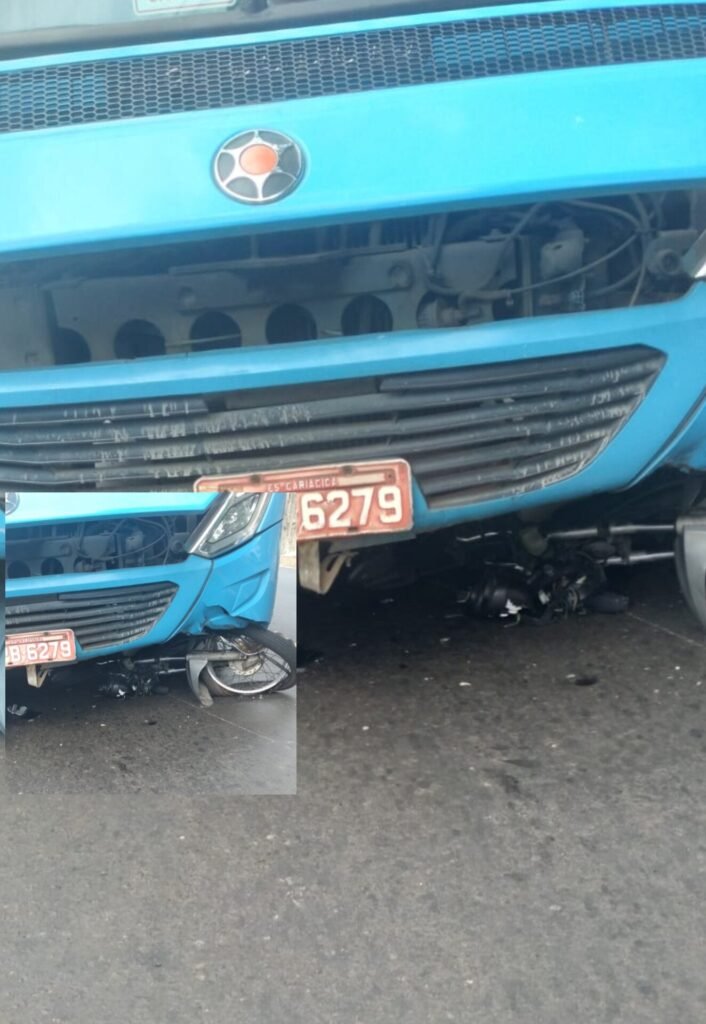 Na tarde desta segunda-feira (31), um acidente grave envolvendo um motociclista ocorreu na Rodovia Serafim Derenzi, próximo ao bairro Bela Vista, no município de Vitória. O condutor da moto perdeu o controle do veículo e acabou caindo, indo parar debaixo de um ônibus que fazia a linha 535 (T. Carapina/ T. Ibes) do Sistema Transcol.