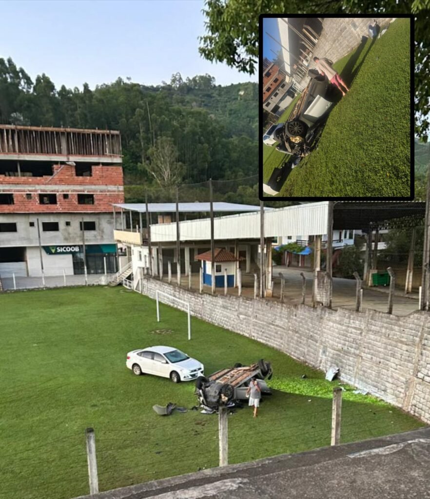 Uma mulher ficou ferida após perder o controle do veículo que conduzia, colidir contra uma arquibancada e capotar dentro de um campo de futebol, na localidade de São José das Fruteiras, em Vargem Alta, na Região Serrana do Espírito Santo. O acidente aconteceu na madrugada deste domingo (11). O nome e a idade da motorista não foram divulgados.