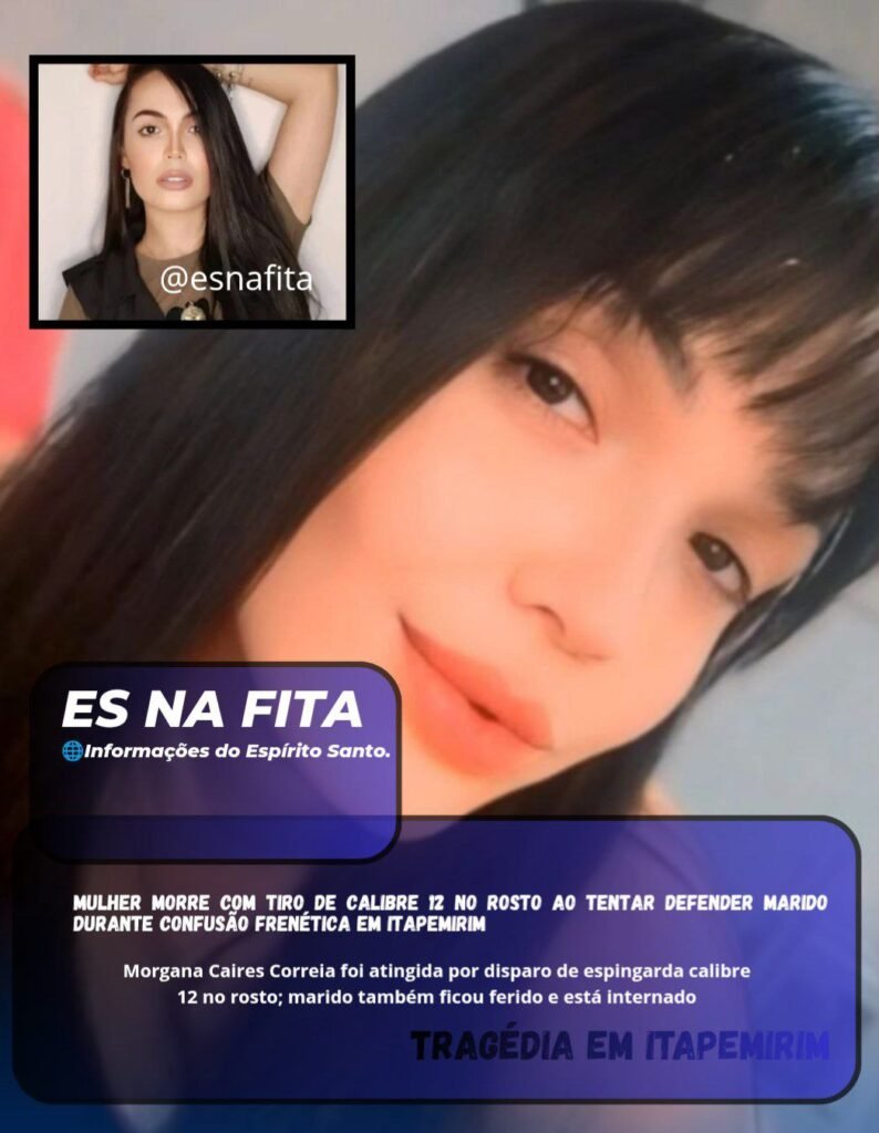 Uma discussão por causa de uma casa terminou em tragédia na tarde deste último domingo (09) em Itaoca, distrito de Itapemirim, no litoral Sul do Espírito Santo. Morgana Caires Correia morreu após ser atingida por um disparo de espingarda calibre 12 no rosto, enquanto tentava defender o marido durante uma briga. O homem também foi baleado e permanece internado.