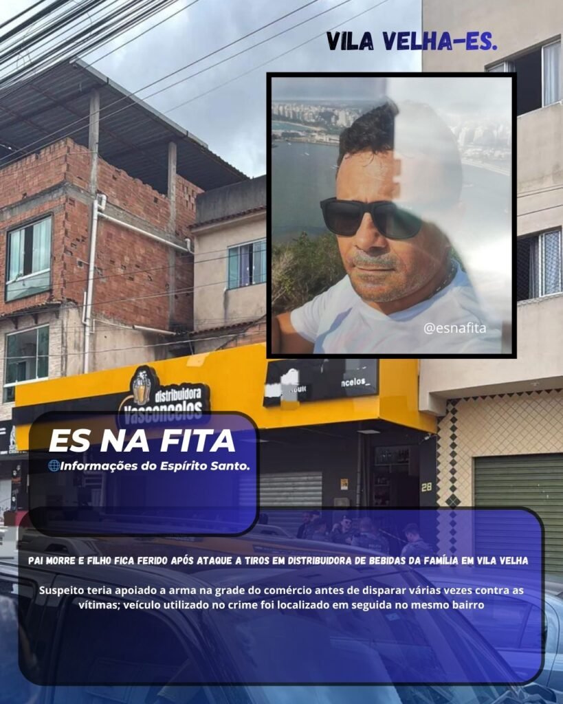 Um homem morreu e seu filho ficou ferido após um ataque a tiros dentro da distribuidora de bebidas da família, na tarde desta última terça-feira (25), localizada na Rua Emygdio Ferreira Sacramento, no bairro Ataíde, em Vila Velha. Até o momento, ninguém foi preso.