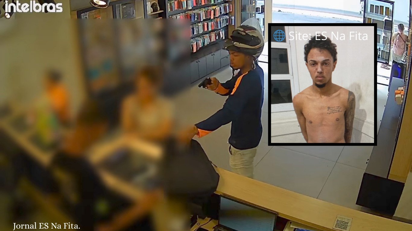 Imagens de segurança mostram que o suspeito entrou na loja como se fosse um cliente comum e iniciou uma conversa com os funcionários do estabelecimento. Após alguns minutos no local, ele se afastou, retirou uma arma de fogo de uma mochila que carregava e anunciou o assalto.