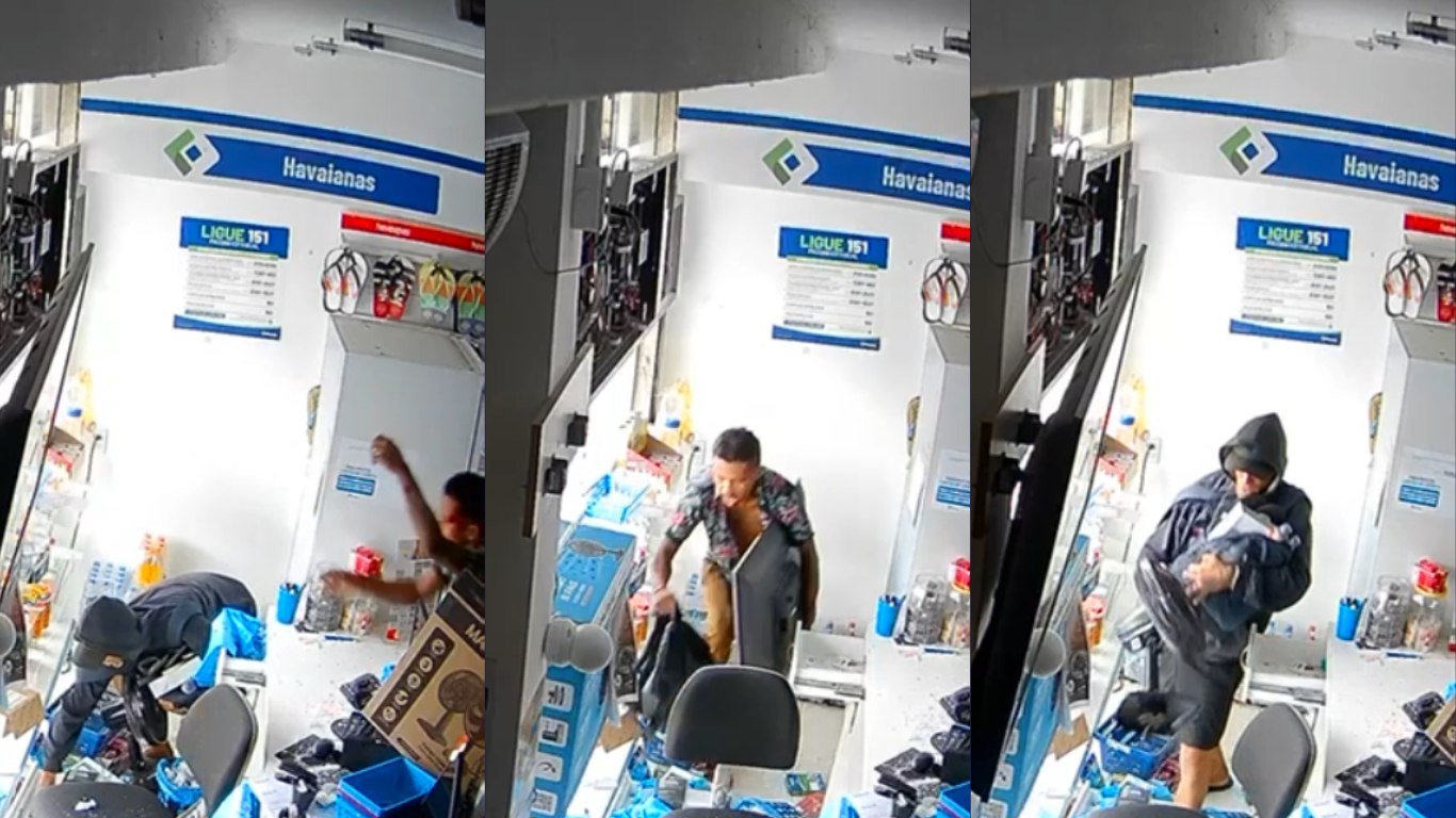 Toda cena do crime foi capturada por câmeras de segurança do estabelecimento, que mostraram um dos invasores descalço e visivelmente apressado, enquanto o outro carregava múltiplos itens. A gravação ajudou na identificação e captura dos suspeitos. Nossa equipe teve acesso ao vídeo que mostra o momento exato do crime. Confira o vídeo.