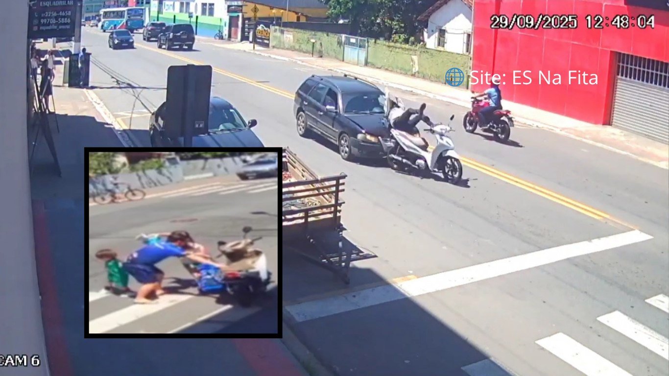 Um acidente por pouco não terminou em tragédia na tarde desta segunda-feira (29), na Avenida Venâncio Flores, no Centro de Aracruz, Norte do Espírito Santo. Um professor, identificado como Thiago Giraldeli Segatto, conseguiu salvar os dois filhos pequenos no momento em que uma motocicleta, desgovernada após uma colisão, quase os atingiu.